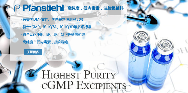 “熱烈祝賀Pfanstiehl的注射級甘氨酸Glycine(G-140)喜獲CDE登記號F20250000403, 這是Pfanstiehl產品獲得的第18個CDE登記號!”甘氨酸在醫藥輔料制劑中應用廣泛,, 可作為緩沖劑,增溶劑,穩定劑等,具有諸多優勢。Pfanstiehl秉承一貫高品質理念,為滿足全球生物制藥行業對于高品質甘氨酸的需求,隆重推出的注射級甘氨酸Glycine (G-140), 具有超高純度,超低內毒素,超低金屬殘留的特點,單獨檢測29種金屬離子,并且新增DNA,RNA,DNA酶,RNA酶和脂肪酶,亞硝酸鹽等多項質量指標的檢測,符合多國藥典規定(USP, EP, BP, JPE, ChP),可用于生物治療性藥物和疫苗的生產。產品信息:· 產品名稱:Glycine, High Purity, Low Endotoxin, Low Metals, USP, EP, BP, JPE, ChP (G-140)· 中文名稱:甘氨酸· 分子式:C2H5NO2· 分子量:75.07 g / mol· CAS號:56-40-6· 產品貨號:G-140產品特點: · 超高純度,超低內毒素,超低微生物含量,超低金屬雜質殘留· 質量指標新增DNA,RNA,DNA酶,RNA酶,脂肪酶和亞硝酸鹽檢測· 符合多國藥典:USP, EP, BP, JPE, ChP· 符合ICH Q3D標準· 符合GMP標準· 已獲DMF和CDE登記號 產品應用:· 緩沖劑· 穩定劑· 增溶劑如果您對Pfanstiehl注射級別Glycine G-140感興趣,歡迎聯系Pfanstiehl 中國區代理商北京西美杰科技有限公司獲得如下詳細的產品概況說明文件和測試樣品。Pfanstiehl Inc.最新產品系列如下,歡迎聯系北京西美杰科技有限公司獲取100g裝免費樣品。北京西美杰科技有限公司為Pfanstiehl中國代理,為客戶提供完善的技術支持與售后服務。歡迎撥打西美杰客服電話400-050-4006或者登陸網站www_xmjsci_com.zx156.com了解更多信息。 更多>